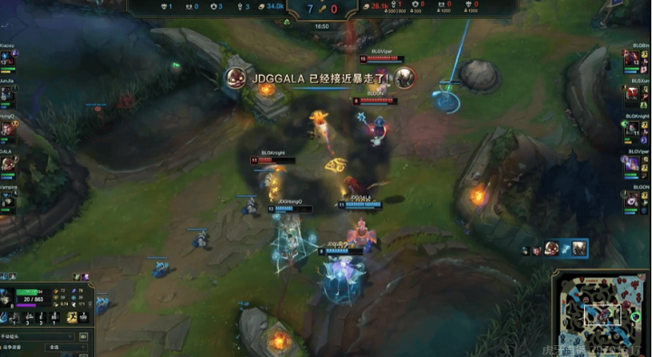 16分钟:Xun潘森开大落地被控死,JDG击杀对方中野打出零换二,飞机拿到双杀