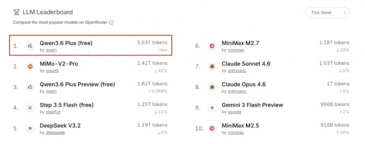 辉煌节期间,一又友圈一度被 Qwen3.6-Plus 登顶 OpenRouter 的日榜榜首,刷新平台纪录这件事刷屏。
