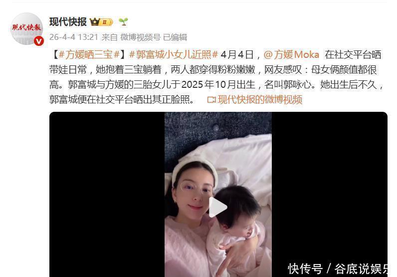 4月4日,方媛共享的这组像片,主角恰是她与郭富城的第三个儿子——郭咏心。小家伙昨年10月才出身,如今还活气半岁,毅然是镜头前的“老演员”了。毕竟,她一出身就享受了“天王级”官宣待遇,老爸郭富城早就在酬酢平台大大方方晒过她的正脸照。