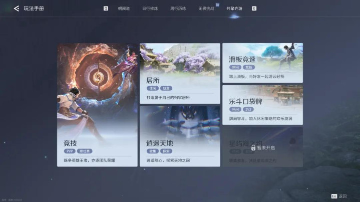 这种外交体验如若再进一步延迟,其实也就是轻度/泛文娱玩家的需求了。游戏为此也遐想了不少玩法来相连,比如说可以叫一又友来浇水、偷菜的家园玩法,和好友沿路互动演奏、放烟花、打牌、滑板竞速、拍照合影之类的赋闲内容。