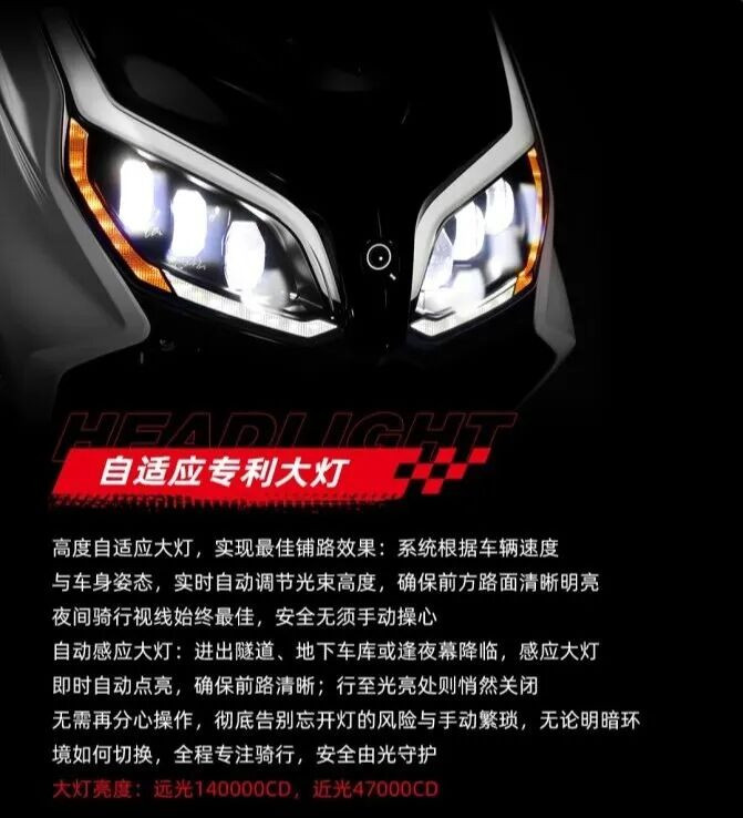 能源部分,搭载的是隆鑫150cc四气门发动机,最大功率11kw(15ps)/8500rpm,最大扭矩14.7N.m/6500rpm,隆鑫这款150发动机经由多数车型考据,可靠性毋庸多惦记。电控部分接纳德国英飞凌32位芯片+博世电喷+阿尔卑斯三合一传感器,城市通勤完全够用。