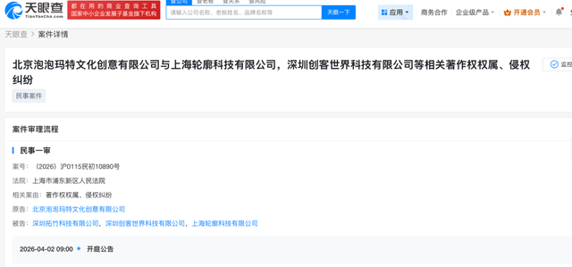 近日,据天眼查炫耀,3D打印独角兽拓竹科技卷入一齐版权纠纷。原告为泡泡玛特,被告包括拓竹科技,偏执100%捏股的两家子公司——深圳创客寰宇科技有限公司、上海轮廓科技有限公司,相关案由为文章权权属、侵权纠纷。