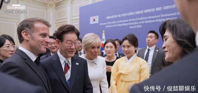李在明(韩国政界代表东谈主物)带着马克龙去会宥恕土大企业高管,李富真看成三星中枢东谈主物,天然被注意先容。