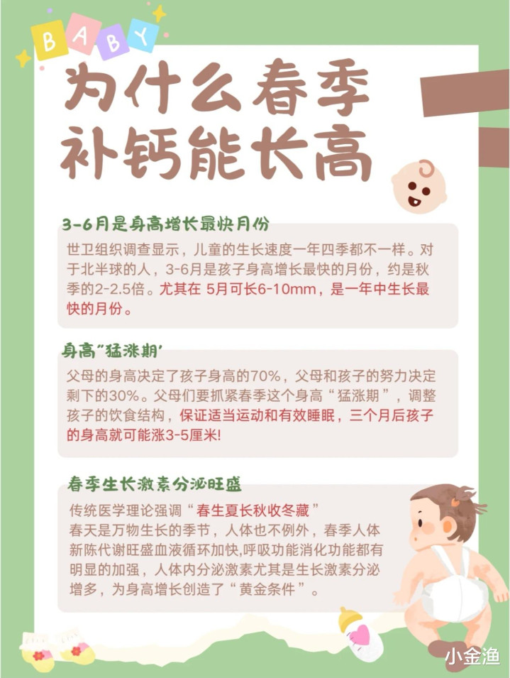 看着窗外阳光越来越好,家里的神兽是不是也嗅觉元气心灵更生,怎样齐跑不累?当作过来东说念主,我要暗暗告诉诸君宝妈一个秘要:春天关联词宝宝长个子的“黄金加快器”!寰宇卫生组织齐盘验阐发了,春天这几个月,宝宝长高的速率是其他季节的两倍多。这就好比庄稼在春天拚命拔节相通,我们宝宝的体魄也在暗暗发力。是以,今天我们不聊别的,就迥殊来聊聊怎样在这个关节技能,把“钙”补到位,让宝宝的小个子也能窜一窜,收拢这个千载难逢的长高契机。